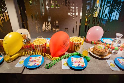 Im Kiddy Dome erhält jede Geburtstagsfeier Ihren eigenen separaten Geburtstagstisch. Bereits beim Buchen der Feier können unterschiedliche Snacks und Speisen ausgewählt werden. Die Zeit zum Planen der Spiele und Vorbereiten der Speisen kannst Du dafür nutzen, Dich zu entspannen!